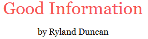 I will email you good information. If you want to find out about something, tell me and I will try to already know some information about it. My name is Ryland.