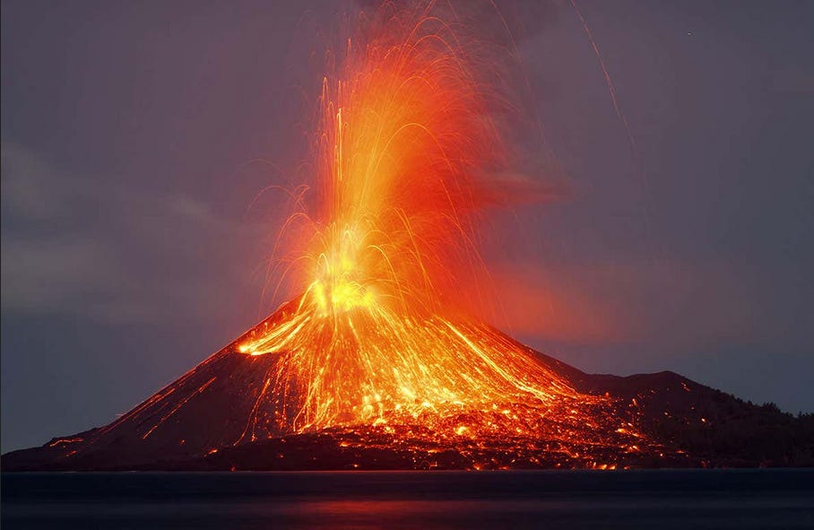 You see inside of every volcano, and all over the place beneath the earth, is a sort of opposite water called magma. Where water is a liquid made of wet, magma is a liquid made out of hot. Someone might tell you magma is made out of superheated rocks, I would tell you rocks is made out of supercooled fire. Anyway magma is always roiling and boiling beneath our good earth like the waves of ocean and sometimes it gets excited to see everybody and explodes out of the volcano and becomes lava I think? I think when magma is inside the earth it’s magma but it’s called lava on the outside, I CANNOT IMAGINE WHY but I know if you say magma and lava are the same thing some worked up smarty pants will crawl out from behind your toilet to say ohhhhh no it’s differentttt and before you can ask what they were doing back there, they’re out the door with enough genetic material for them to Weird Science together a sex genie who looks like you. This is happening every day in America.